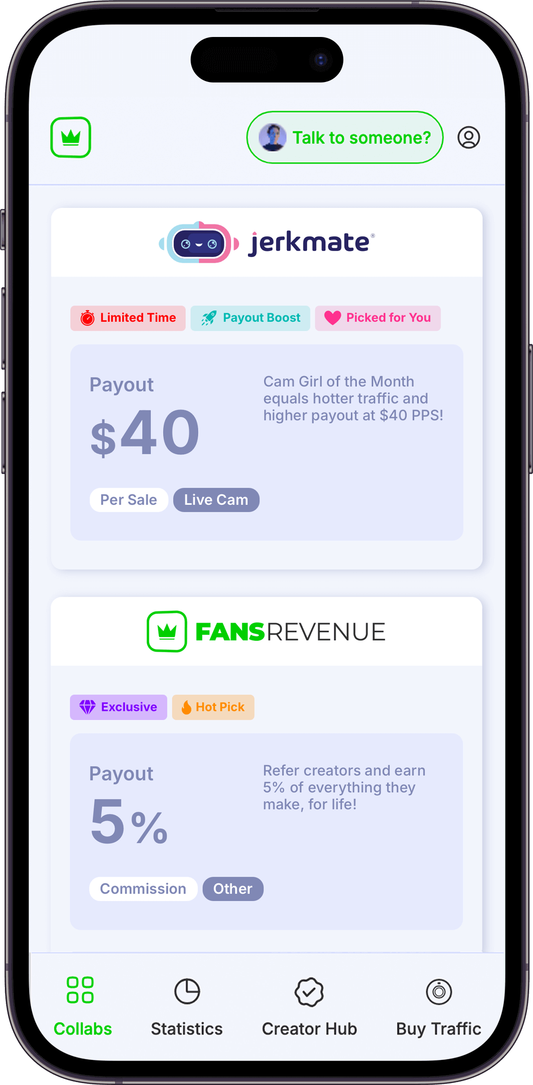 Leverage your network and make money out of it! Use your referral link to bring new creators to FansRevenue. Get a 5% lifetime commission on all their income.